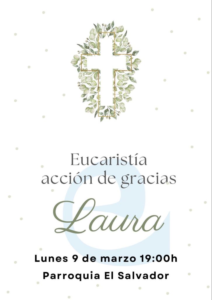 Os invitamos a participar en la celebración que, como comunidad educativa de Escolapias, vamos a compartir el próximo LUNES 9 de marzo a las 19:00 horas en la Parroquia de EL SALVADOR en acción de gracias por nuestra querida compañera Laura.